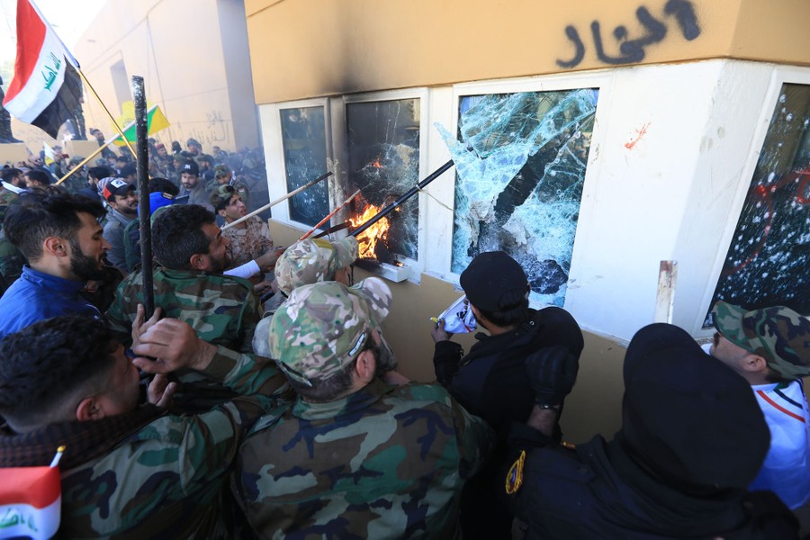 Read moreOutraged Iraqi protesters storm the U.S. Embassy in Baghdad, protesting Washington's attacks on armed battalions belong to Iranian-backed Hashd al-Shaabi forces on December 31, 2019. At least 25 people were killed in weekend U.S. airstrikes on positions of Kataib Hezbollah, an Iranian-backed militia group, in Iraq and Syria. Hundreds of Iraqi protesters gathered early Tuesday near the embassy to show their anger at the U.S. move. #
