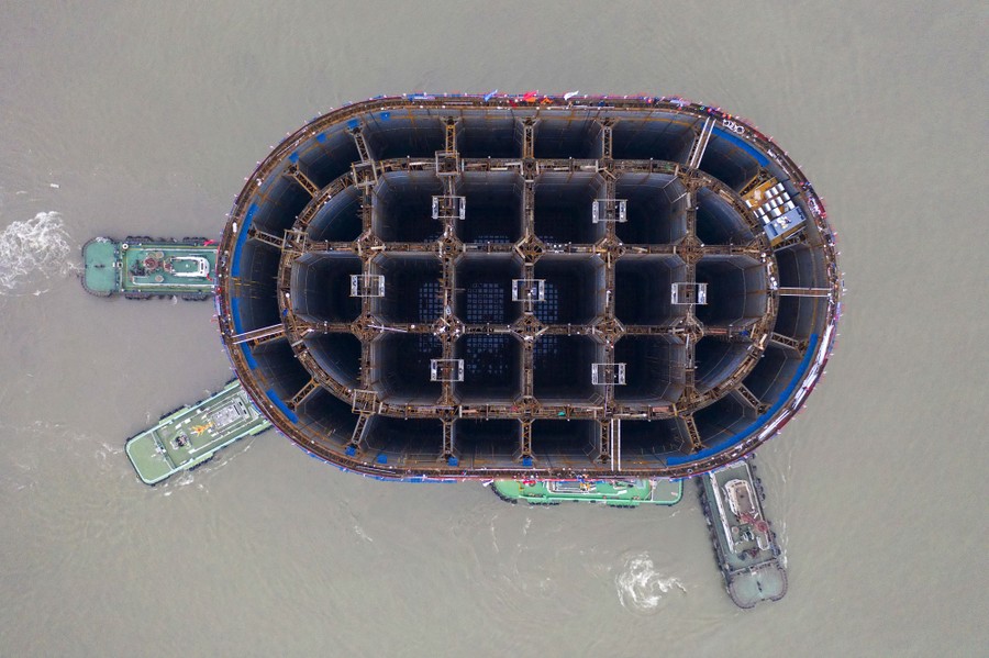 Read moreThe world's largest steel caisson, meant for Pier 5 of the Changtai Yangtze River Bridge, floats along the Yangtze River near Taizhou City, Jiangsu province, China, on December 28, 2019. #