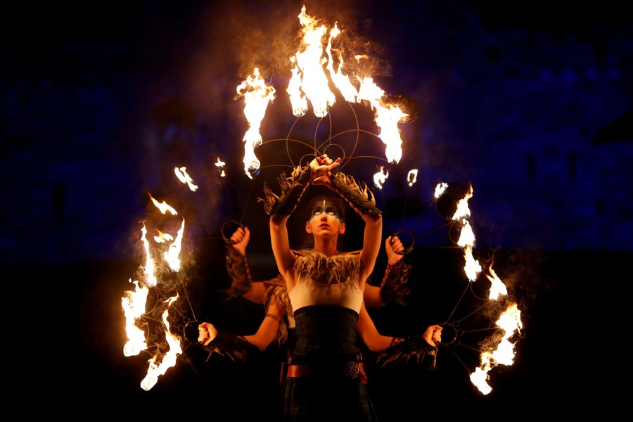 Read moreMembers of PyroCeltica pose in front of Edinburgh Castle in advance of Edinburgh's Hogmanay torchlight procession down the Royal Mile in Edinburgh, Scotland, on December 30, 2019. #