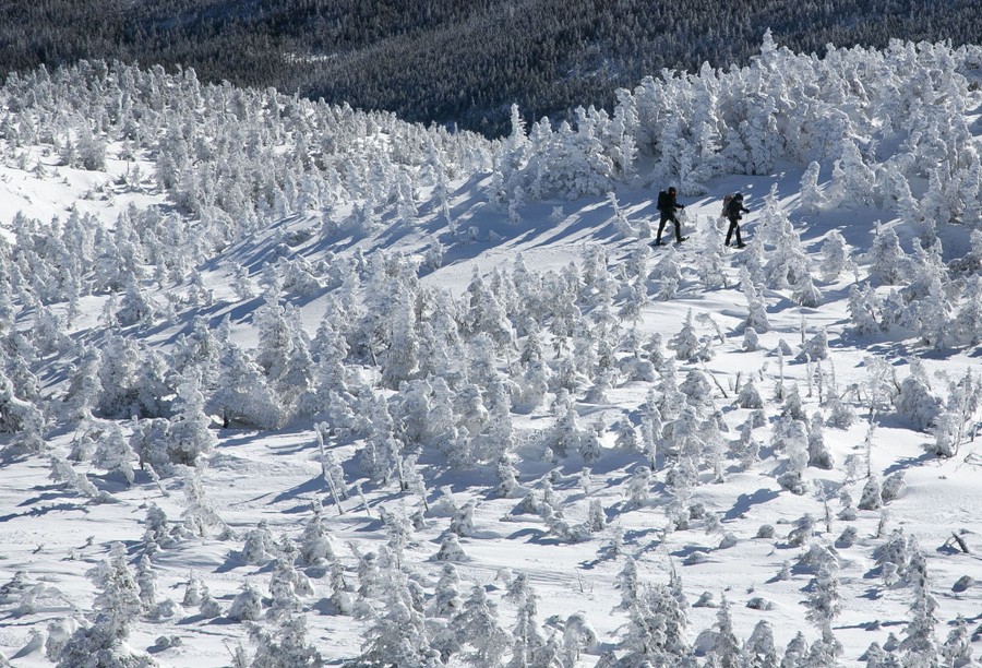 Read moreA pair of hikers snowshoe through a forest of rime ice–covered spruce trees on the eastern slope of Mount Marcy, New York’s tallest mountain, near Keene, New York, on March 7, 2020. #