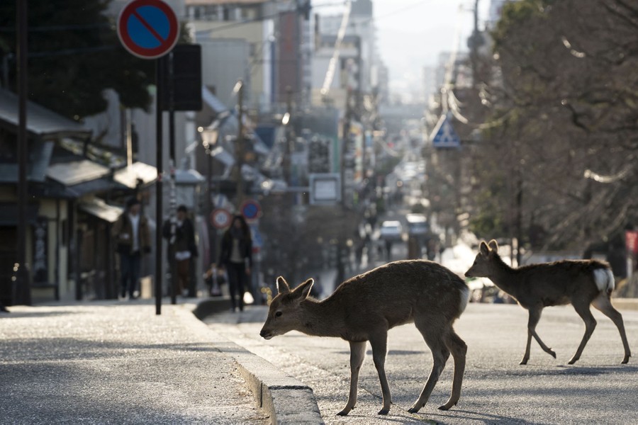 Read moreSika deer cross a road in Nara, Japan, on March 12, 2020. Like a number of tourist hot spots around the country, Nara, a popular ancient city where free-roaming deer are an attraction for tourists, has seen a decline in visitor numbers in recent weeks amid concern over the spread of COVID-19. Some deer have begun roaming into the city’s residential area due to a shortage of food, as they were partially fed by visitors, according to media reports. #