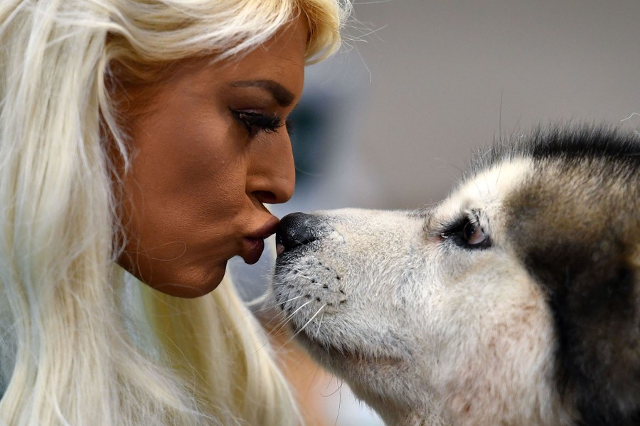 Read moreA woman kisses an Alaskan Malamute named Arctictreks Black Sheep during grooming on day three of the Crufts dog show at the NEC arena on March 7, 2020, in Birmingham, England. #
