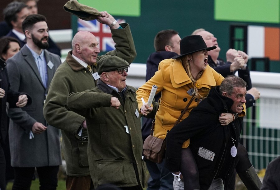 Read moreConnections of Imperial Aura cheer home their horse as it wins the Northern Trust Company Novices’ Handicap Chase on Champion Day at Cheltenham Racecourse in Cheltenham, England, on March 10, 2020. #