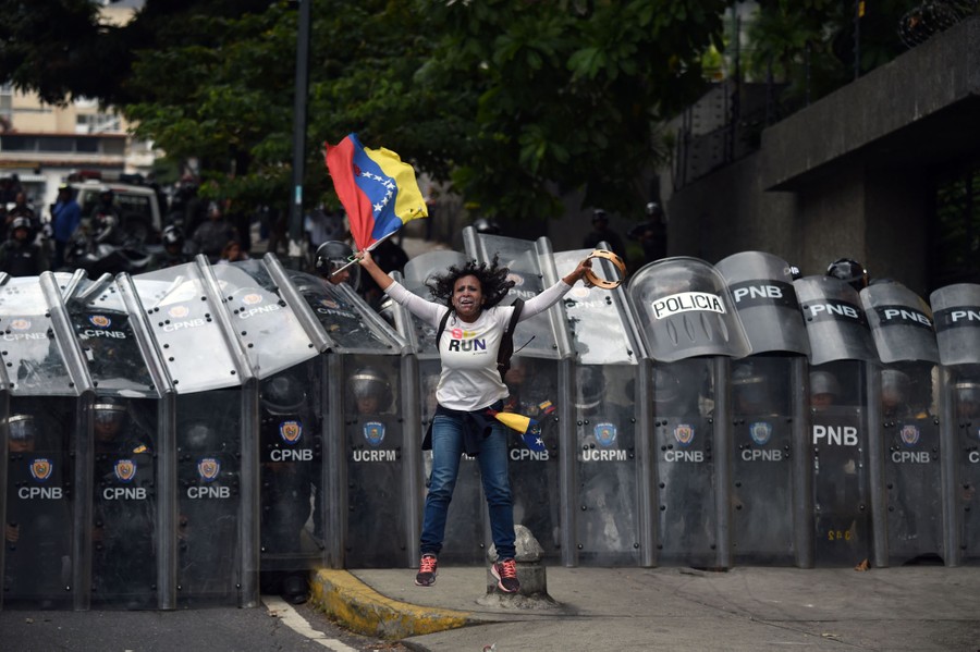 Read moreA supporter of Venezuelan opposition leader Juan Guaidó reacts in front of Venezuelan security forces that were preventing protesters from continuing to the National Assembly in Caracas on March 10, 2020. #