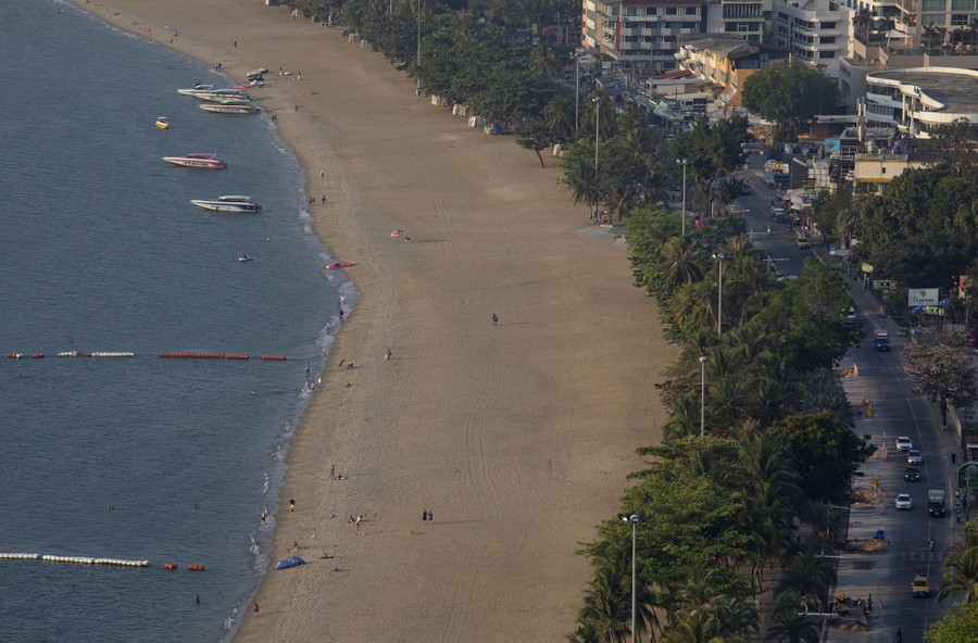 Read moreA scene from above shows a quiet Pattaya Beach—normally packed with tourists—in Pattaya, Thailand, on March 11, 2020. Tourist arrivals to Thailand have plunged more than 50 percent and are expected to continue declining for months ahead. #