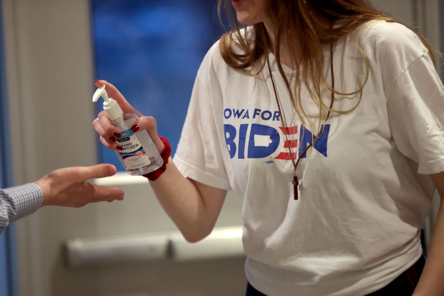 Read moreA campaign worker offers hand sanitizer to guests at a rally with the Democratic presidential candidate and former Vice President Joe Biden at Renaissance High School on March 9, 2020, in Detroit, Michigan. #