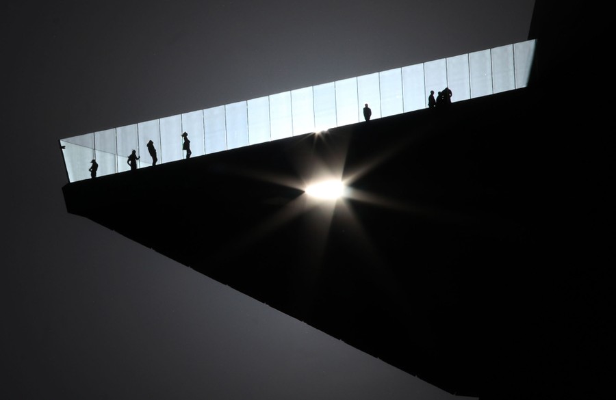 Read moreThe sun shines through the glass floor of the Edge, as people stand on the outdoor skydeck, 100 floors high, at the top of 30 Hudson Yards, on March 9, 2020, in New York City. #