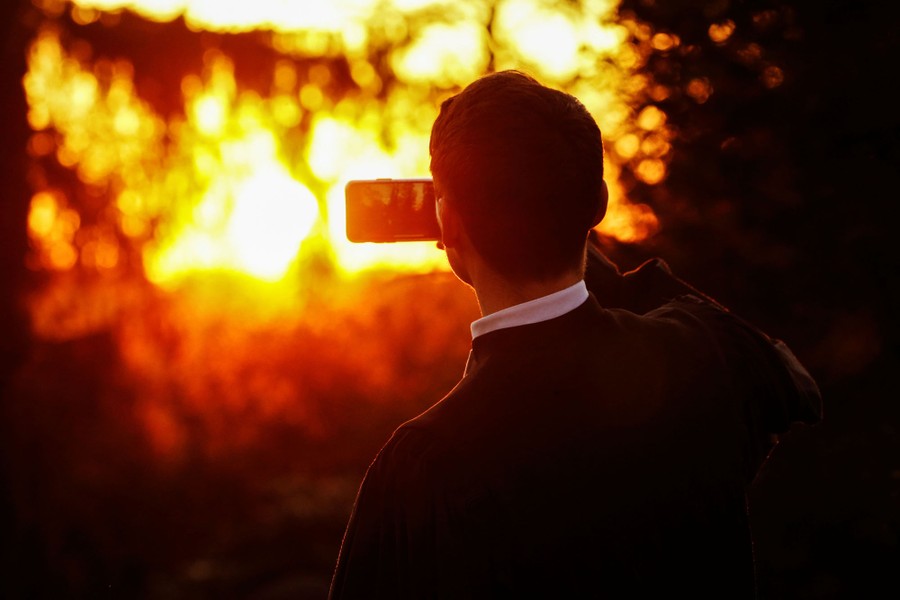 Read morePastor Viktor Weber films with his cellphone as he celebrates the resurrection of Jesus Christ on Easter Sunday at a cemetery in Berlin. The ceremony was live-streamed in Germany on April 12, 2020. #