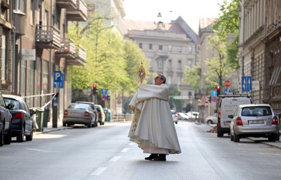 Read moreA man celebrates a Mass outside of the Church of Saint Catherine in Ralbitz, Germany, on April 12, 2020. Normally, according to tradition more than 100 years old, men of the Sorbs, dressed in black tailcoats, ride on decorated horses, proclaiming, singing, and praying the message of Jesus’s resurrection. The Sorbs are a Slavic German minority located near the German-Polish border. #