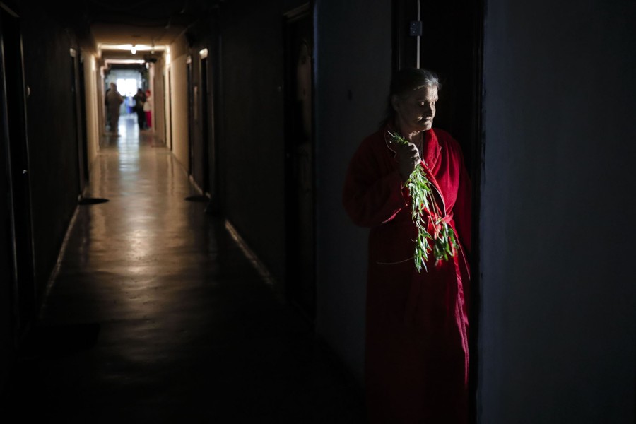 Read moreA woman holds willow branches that she received from a priest, an Orthodox Palm Sunday tradition, in the corridor of an apartment building in Bucharest, Romania, on April 12, 2020. Priests accompanied by volunteers delivered the traditional willow branches to residents. #