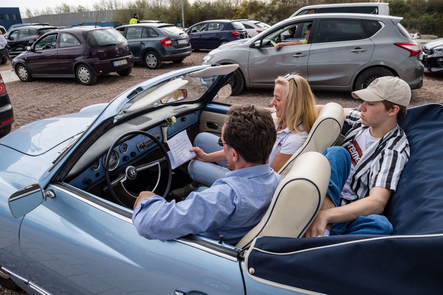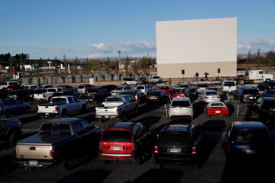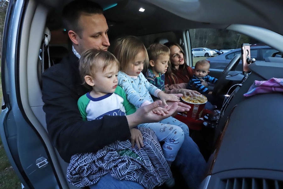 Read morePastor Marc Lickins (top left) of the Harvest Baptist Church in Harrison, Pennsylvania, gathers with his family in the front of their minivan to watch the first screening of an Easter service produced by the church, at the Riverside Drive-In Theatre in Parks Township, Pennsylvania, on April 10, 2020. #