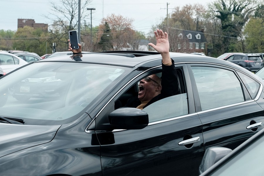 Read moreA member of the Victory Christian Ministries International church attends an Easter Sunday service in the church’s parking lot in Temple Hills, Maryland, on April 12, 2020. #