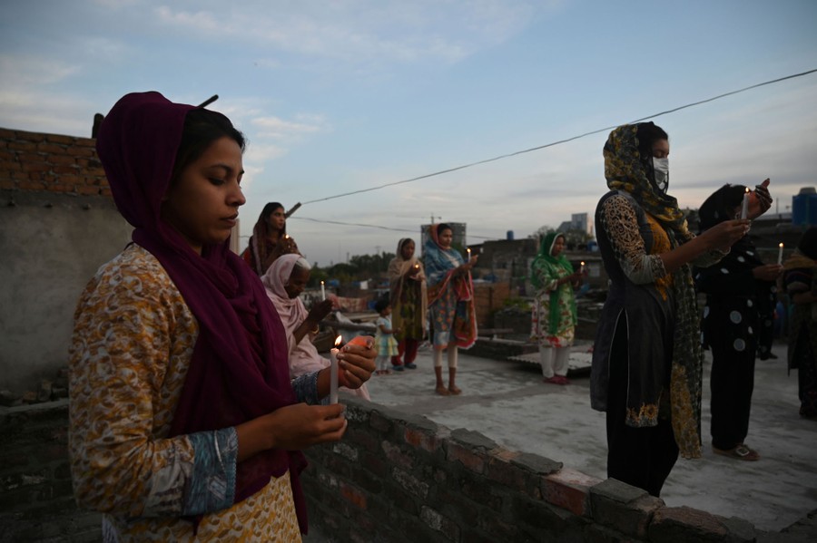 Read moreChristians hold candles as they offer prayers during an Easter service on the rooftop of their house during a government-imposed nationwide lockdown, in Islamabad, Pakistan, on April 12, 2020. #