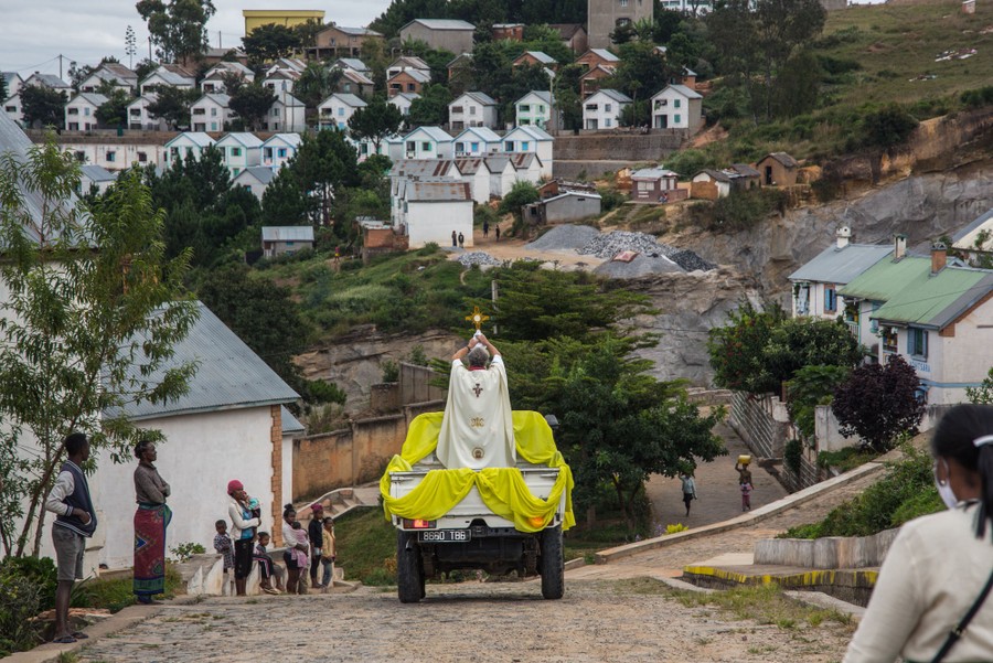 Read moreFather Pedro, founder of the Akamasoa Association, leads the traditional great Mass celebrating Easter through the different villages of his community in Antananarivo, Madagascar, on April 12, 2020, adapting to the rules of social distancing. #