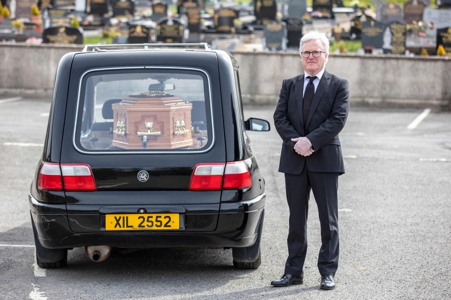 Read morePatrick Blake, a funeral director, stands outside Saint Ninnidh's church in Derrylin, Northern Ireland, on April 22, 2020. Blake said there is no option but to take COVID-19 risks, because he cannot pick and choose the funerals he is asked to handle. The Blake family has provided the community with funeral services for more than 130 years, and feels a duty to deliver beyond the actual funeral arrangements, providing face-to-face access, advice, and support for bereaved families whose previous generations also used their funeral services. #