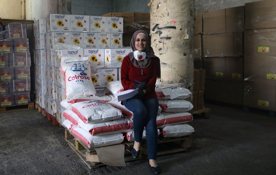 Read moreIman Abu Areesh, the coordinator of the Emergency and Aid committee for the governor's office in Hebron, the West Bank city, poses beside stacks of supplies on April 22, 2020. She said that she loves her job because it allows her to communicate with people in need, and during the pandemic, she feels that she's in the right place. #