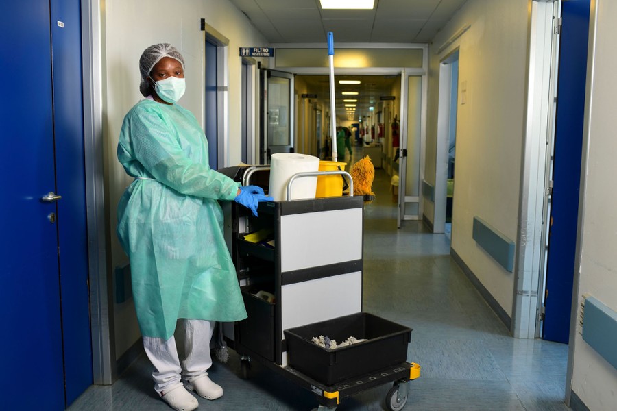 Read moreFatou Traore, a worker with the Cremona hospital's cleaning staff, poses prior to starting her shift in the COVID-19 intensive-therapy area on April 22, 2020, in Cremona, Ivory Coast, during the country's lockdown. #