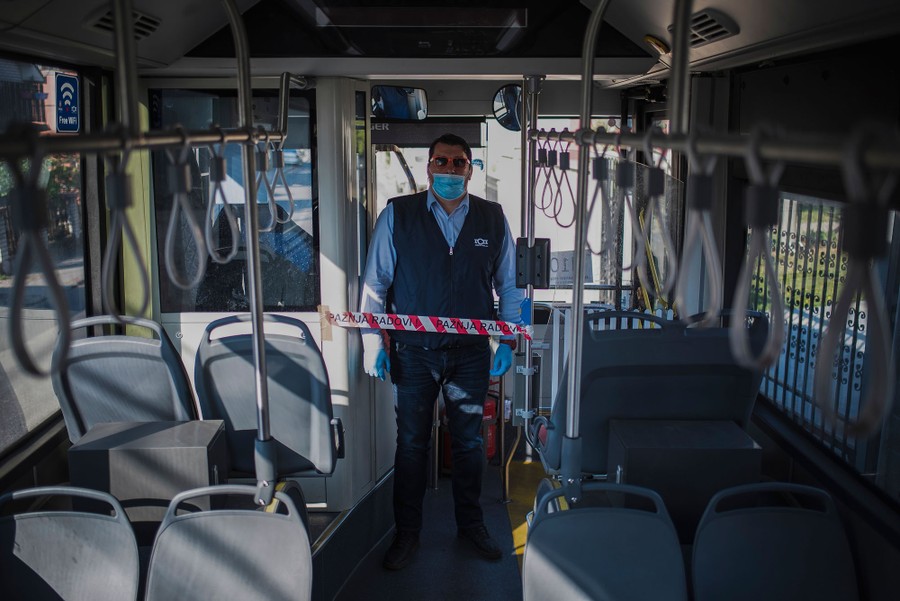 Read moreMarjan Andjelkovic, a bus driver, at work in Belgrade, Serbia, on April 23, 2020. Andjelkovic does not feel that he is making a sacrifice by doing his job, but sees it as his normal routine and an obligation to set a good example for others by doing it. He wears all the necessary protective gear while on the job to show responsibility for society, his family, and himself. #