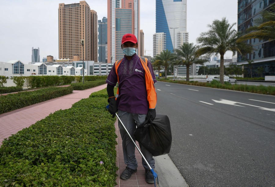 Read moreArjun Shrestha, a cleaner, poses in Dubai, United Arab Emirates, on April 20, 2020. Shrestha said he does his job despite the danger of being exposed to the novel coronavirus because he needs to make a living. #