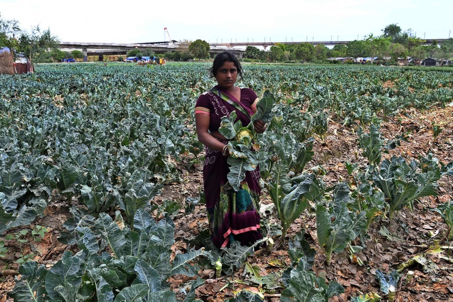 Read moreSushma Maurya poses with cauliflower on her vegetable farm in New Delhi on April 23, 2020. Maurya, who was both born and married into a farming family, said that farming is the only thing she knows, and that "farmers must continue working so that people living in cities can get fresh vegetables." #