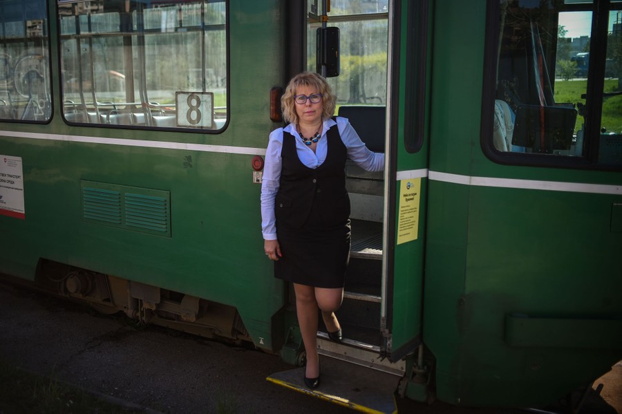 Read moreStoyanka Dimitrova, a tram driver, poses on the steps of a tram in Sofia, Bulgaria, on April 23, 2020. Dimitrova continues working despite the novel coronavirus health crisis because she feels someone has to do the job, and she enjoys the work. She does not consider her job a sacrifice. "Everyone chooses his profession on his own and should carry his cross," she said. #