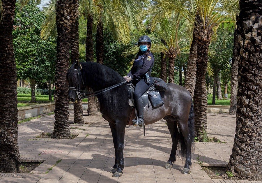 Read moreHelena Gonzalvo Sanchez, a mounted police officer, photographed on patrol in Valencia, Spain, on April 22, 2020. Sanchez believes it is her responsibility and duty to work and feels proud to be able to contribute to this situation through her work. #