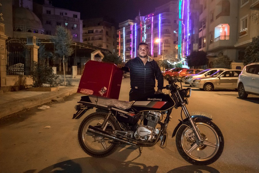 Read moreKarem Khalafallah, a deliveryman, poses while on duty in Cairo late on April 23, 2020. Khalafallah, who delivers fresh vegetables to homes, said he continues to work in order to save money to get married in the near future, and to help his family. He added that working during the pandemic is his only way to survive. #