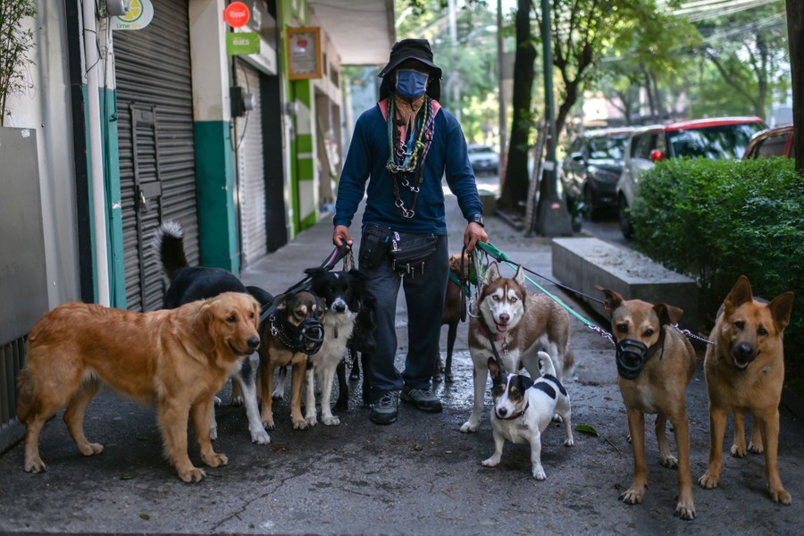 Read moreArmando Garcia, a dog walker, in the La Condesa neighborhood of Mexico City on April 22, 2020. Garcia believes his work helps alleviate the stress of dogs whose owners remain in quarantine during the pandemic. #