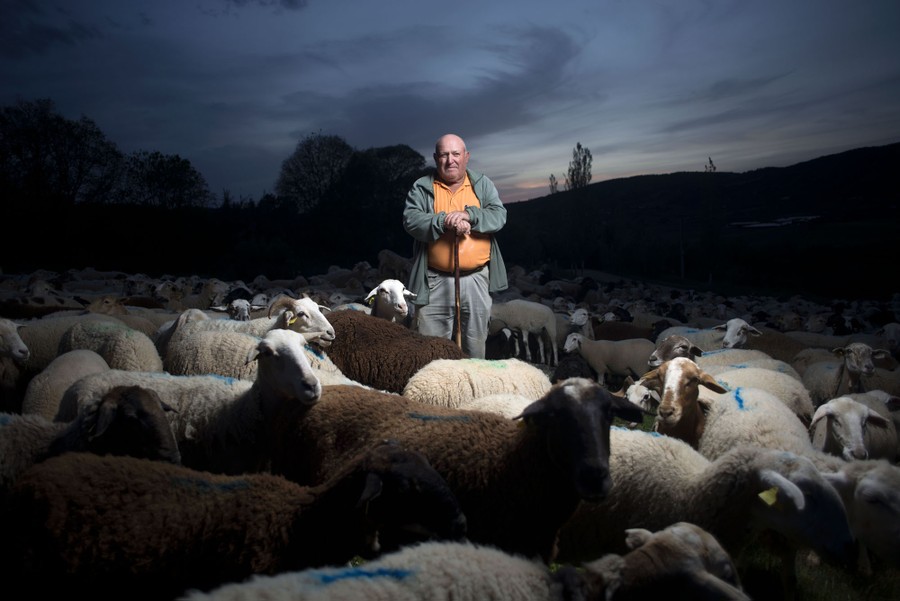 Read moreRamon Montesinos Roman, a shepherd, poses with his flock of sheep in Ronda, Spain, on April 23, 2020. His only protective measure against COVID-19, he jokes, is his stick for walking in the field. He is not in contact with other people, so he doesn't wear a face mask. He does carry out strict sanitary controls for the sheep; they are marked with blue dye after they've had a blood test. He considers it his duty to feed and care for the animals, because it is necessary to maintain the food chain. #