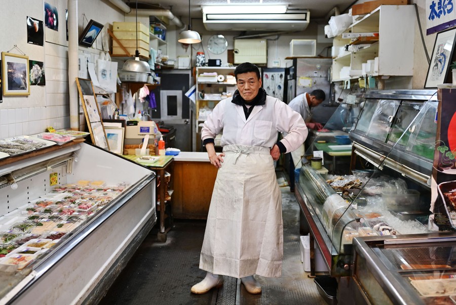 Read moreKunio Hayakawa, a fishmonger, poses in his shop in Tokyo on April 21, 2020. Hayakawa decided to keep his shop open, because he wanted to do "everything for Shinagawa people." He said there were no changes due to the virus, with the same number of customers, and that he "will stay open until the end" of the crisis, or until the government says otherwise. #