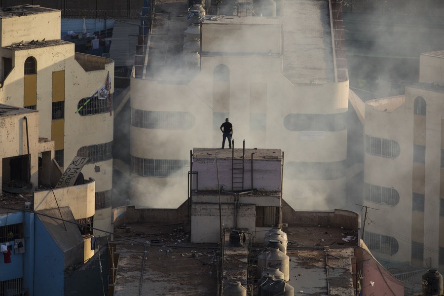Read moreA police officer stands on the roof during a prison riot at Castro Castro prison in Lima, Peru, on April 27, 2020. Peru's prison agency reported that three prisoners died from causes still under investigation after a riot. Inmates complained that authorities were not doing enough to prevent the spread of the coronavirus inside the prison. #