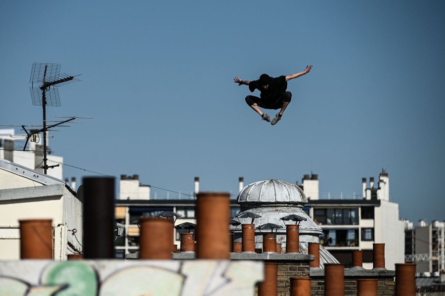 Mount Fuji at sunset, a farewell to the hospital ship Comfort, a burial in Tijuana, a fire at a camp for displaced people in Mali, a prison riot in Peru, ballroom-dancing practice in Australia, King’s Day in the Netherlands, a social-distancing motorbike in India, and much more