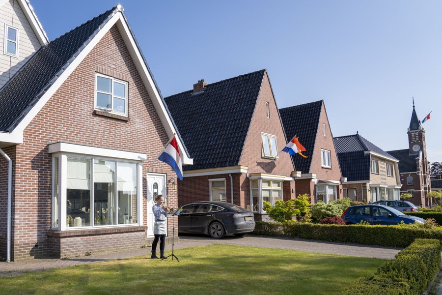 Read moreA girl plays the national anthem of the Kingdom of the Netherlands on her cornet on King's Day, April 27, 2020, in Harkema, the Netherlands. Because of the coronavirus pandemic, this year's traditional festivities were all canceled, including the royal-family visit to the city of Maastricht. #
