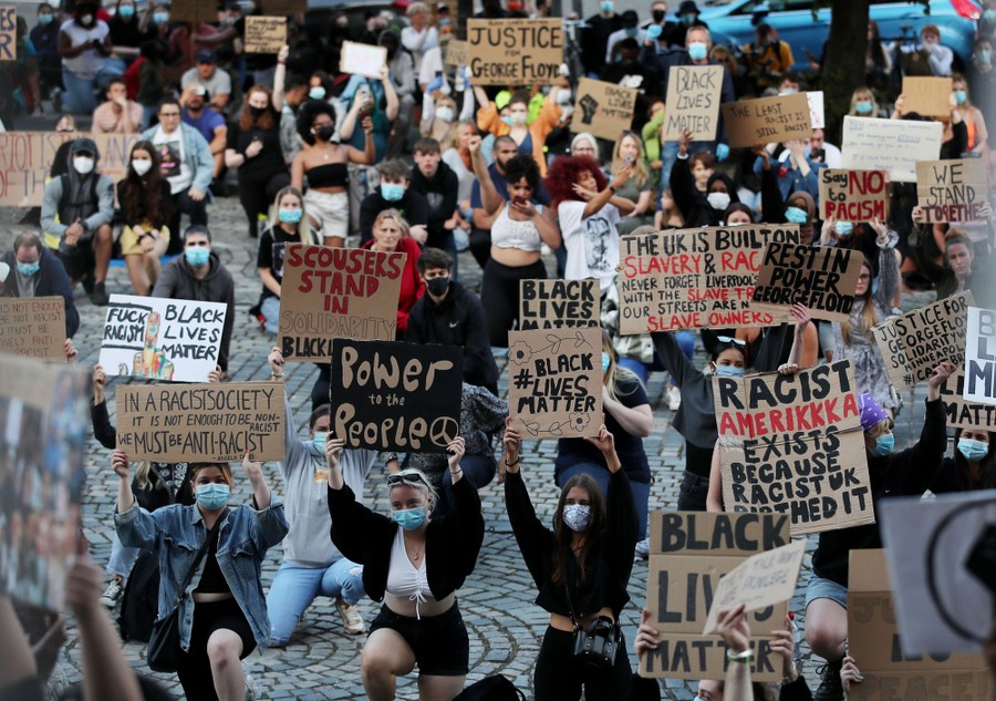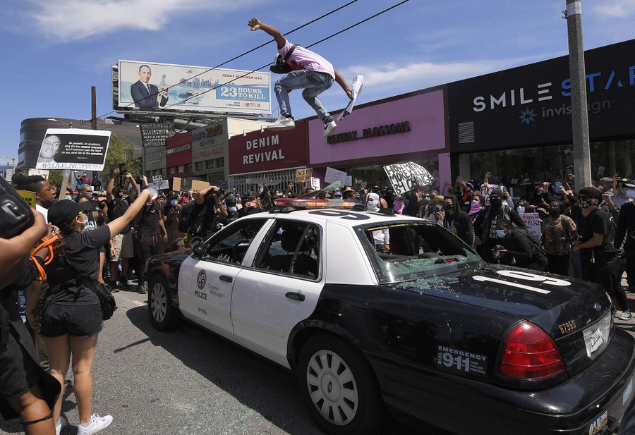 Swimming in Mallorca, mountain art in Switzerland, protests against racism and police brutality across the United States, a coronavirus recovery in Spain, face masks in Indonesia, fashion in Kenya, a well-covered dinosaur in Los Angeles, a rocket lifts astronauts to space from Florida, and much more