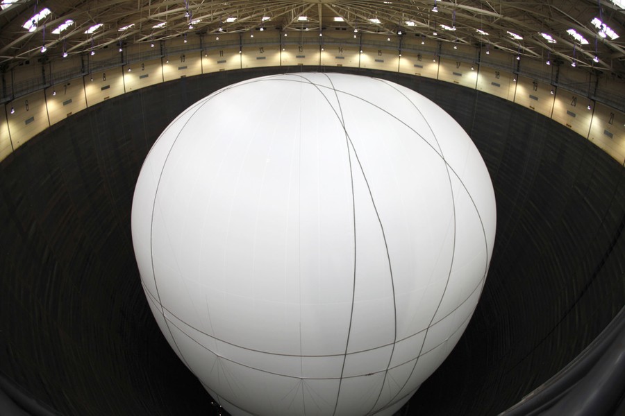 Read more"Big Air Package" is pictured from outside and above during a preview at the Gasometer in Oberhausen on March 15, 2013. The indoor installation is 90 meters high, with a diameter of 50 meters, and a volume of 177,000 cubic meters. #