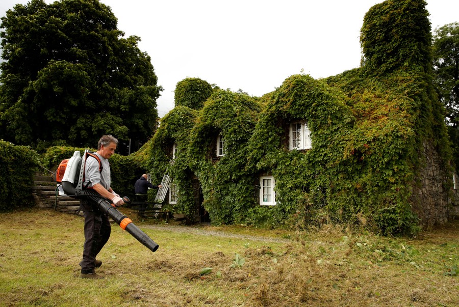 Read moreGardeners trim back the Virginia creeper on the outside of the Tu Hwnt i'r Bont tea room while it prepares to reopen as lockdown conditions in Wales ease, in Llanrwst, Wales, on July 6, 2020. #