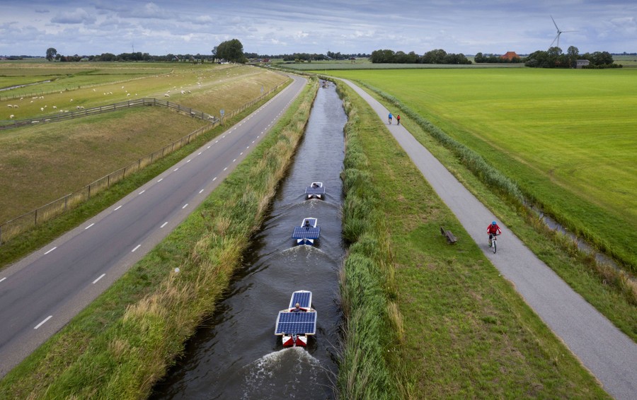 Read moreAn aerial picture shows students sailing with solar boats along the Elfstedentocht (Eleven Cities Races) during the Young Solar Challenge in Hindeloopen, Netherlands , on July 7, 2020. The 220-kilometer journey must be completely solar-powered, and accomplished in five days. #