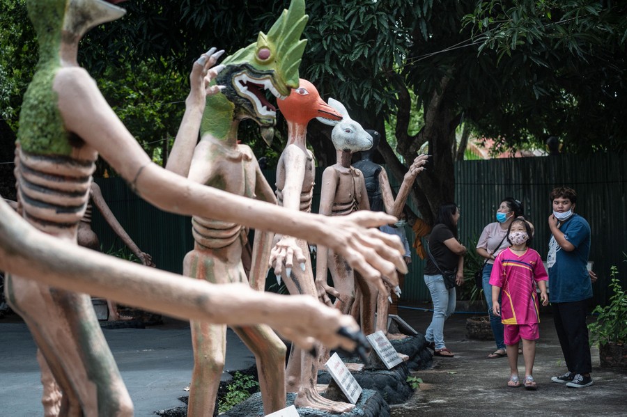 Read moreVisitors look at statues illustrating the fate of people who do bad deeds in a garden depicting a Buddhist version of Hell, at the Wat Saeng Suk temple in the Thai coastal province of Chonburi, on July 9, 2020. #