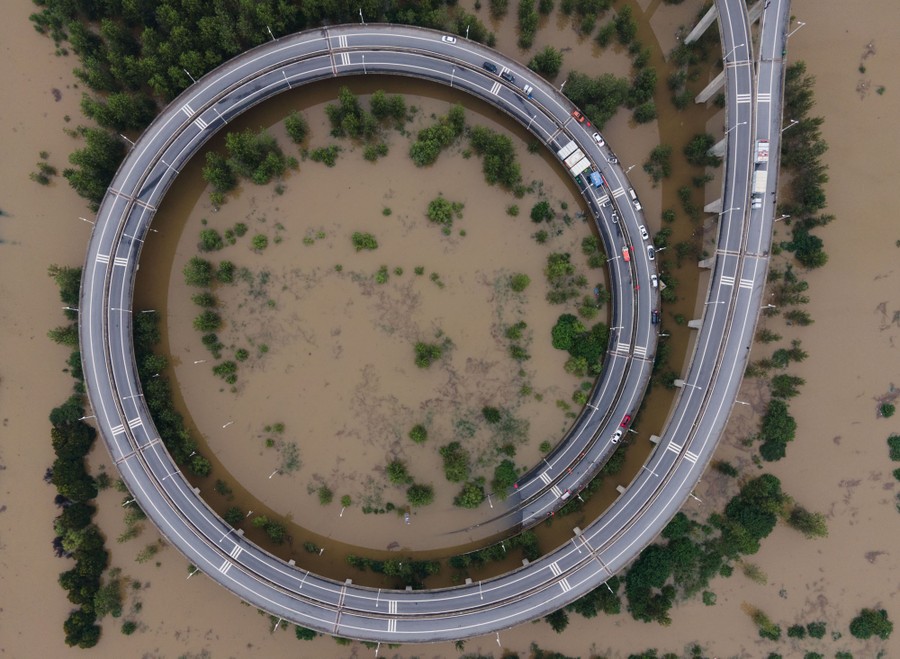 Read moreFlooding of the Yangtze River submerges roadways in Wuhan, China, on July 13, 2020. The Yangtze drainage area has experienced torrential rains for weeks, leaving dozens dead or missing and forcing the evacuation of millions across several provinces. #