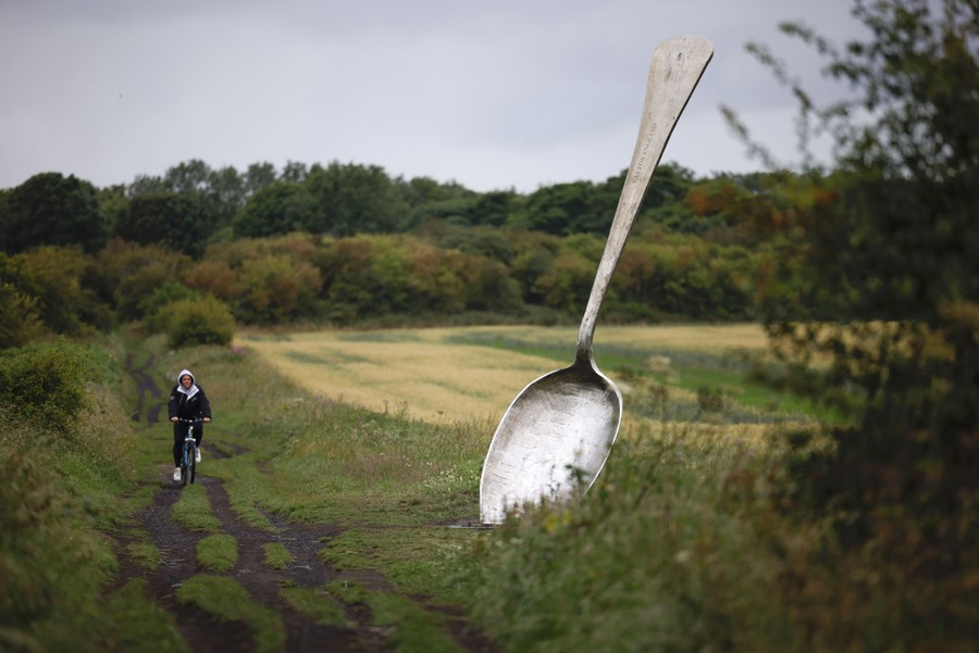 Read more"Eat For England," a 15-foot spoon created by artist Bob Budd, sits between two fields in Cramlington, England, on July 20, 2020. The sculpture was commissioned in 2006 as part of a National Lottery–funded art trail in Northumberland. #