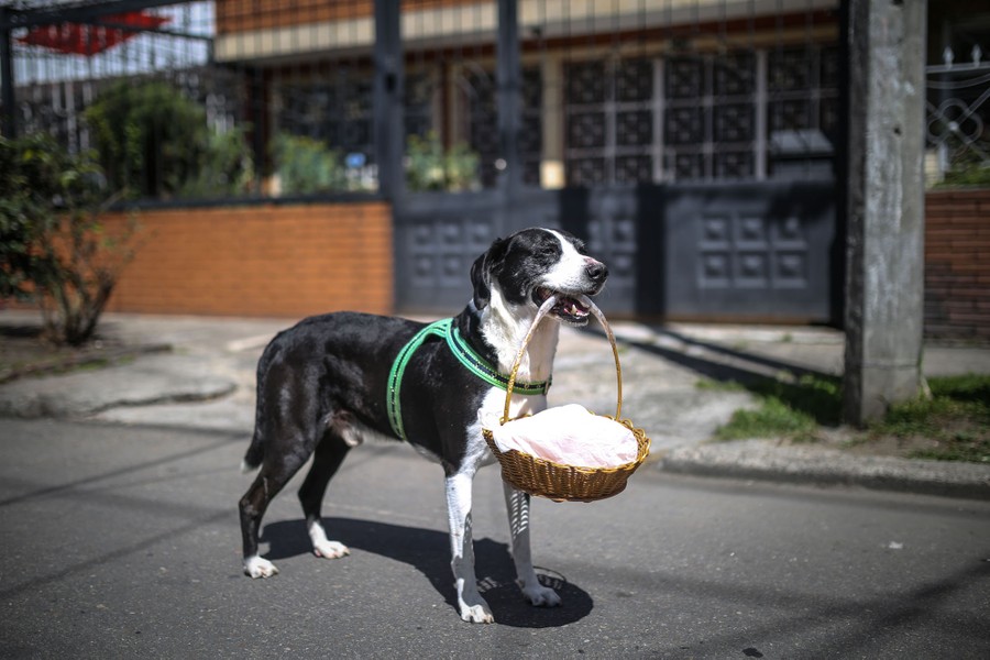 Read moreNino carries a basket with some groceries for his owner in Bogota, Colombia, on July 17, 2020. Nino learned to carry the basket as a puppy, and as time passed he began to bring food to his owner, Jose Ever Henao, 62, who is currently part of the population at risk during the pandemic. #