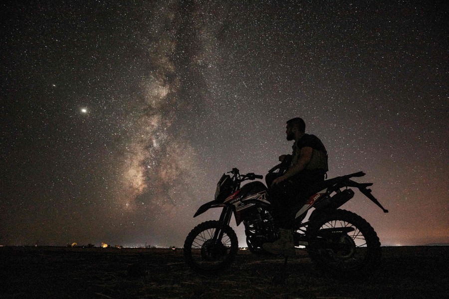 Read moreA long-exposure photo shows the Milky Way in the sky above a Syrian fighter of the Turkish-backed National Front for Liberation group on a motorcycle in the town of Taftanaz, along the front lines in the country's rebel-held northwestern Idlib province, on July 23, 2020. #