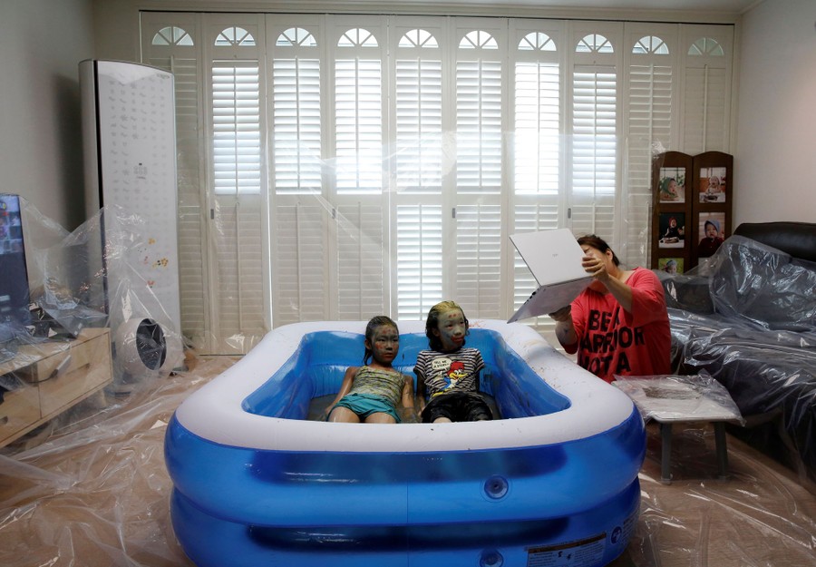 Read moreVisitors wearing face masks take pictures at the National Museum of Korea in Seoul, South Korea, on July 22, 2020. The museum reopened on Wednesday after having been closed for two months due to the coronavirus. #