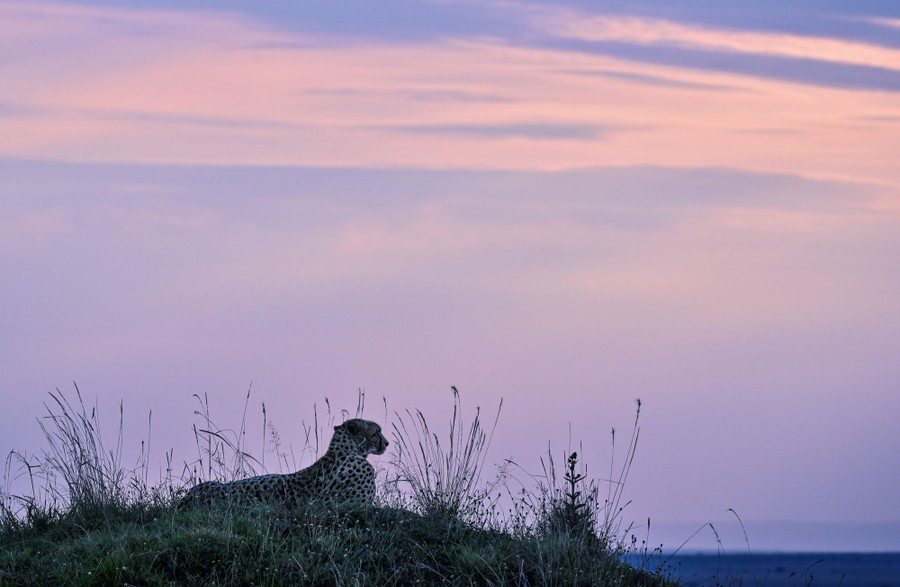 Read moreA young male cheetah rests on a mound at dusk, after feeding on the carcass of a topi antelope that he and his group of four brothers managed to hunt and bring down on the plains of Kenya's Masai Mara National Reserve, on July 16, 2020. #