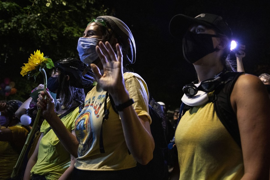 Read moreA female protester group called the Moms is seen during their nightly protest on July 20, 2020, in Portland, Oregon. The federal police response to the ongoing protests against racial inequality has been criticized by city and state elected officials as President Trump threatens to use federal law enforcement in other major cities as well. #