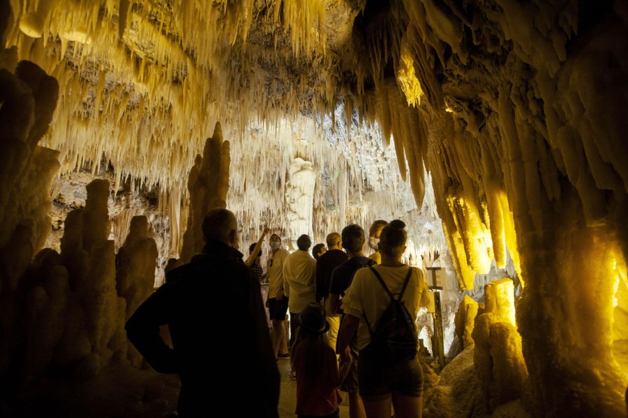 Read moreVisitors observe the stalagmites of the White Grotto in Castellana Grotte, Italy, during a tour on June 28, 2020. The Grotte di Castellana has reopened to members of the public after being closed for three months due to the coronavirus pandemic. #