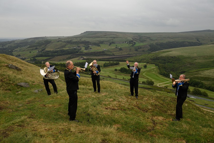 Read moreMembers of the Meltham and Meltham Mills Band practice together for the first time since the government-imposed lockdown began in Worlow Quarry, above the village of Marsden, England, on June 30, 2020. #