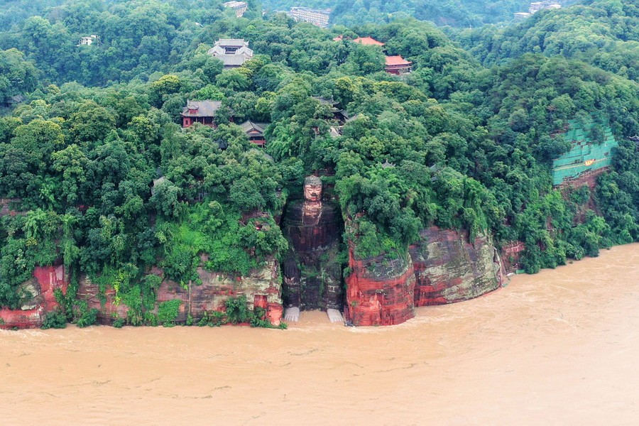 Read moreThis aerial photo taken on August 18, 2020, shows the Leshan Giant Buddha surrounded by rising floodwaters following heavy rains in Leshan in China's southwestern Sichuan province. Continuous rainfall has engulfed streets and displaced residents in the province, as soldiers have evacuated tens of thousands of people from rising floods. #