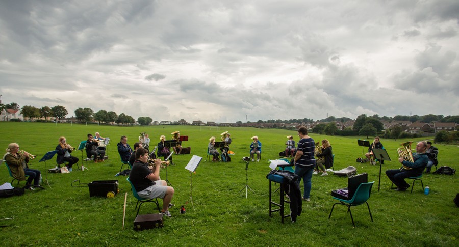 Read moreA view of the Markham Brass Band during an open-air rehearsal in Bedwellty Showfield, their first practice since the start of coronavirus shutdown on August 16, 2020, in Blackwood, Wales #