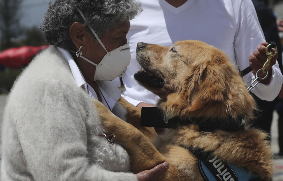 Read moreA police dog greets its new owner during a K-9 police unit retirement ceremony, in Quito, Ecuador, on August 19, 2020. Once the dogs are retired from duty, they are offered up for adoption to people who have passed a rigorous interview process. #